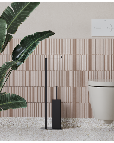 Na akcesorium składa się stylowy stojak na papier toaletowy, a także poręczna szczotka WC skryta w pojemniku. Taki dodatek do łazienki, nie tylko sprawdzi się na co dzień, ale uzupełni jej aranżację. Szczególnie dobrze będzie wyglądał we wnętrzach utrzymanych w stylu skandynawskim lub industrialnym.